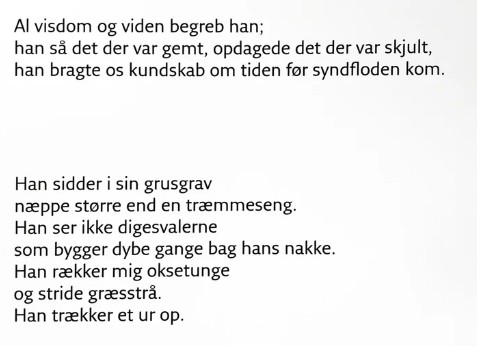 Med hvert træsnit følger tekstark med et uddrag fra det babyloniske helteepos om sagnkongen Gilgamesh og tilhørende digt/tekstlinier af Have under inspiration af Gilgamesh.