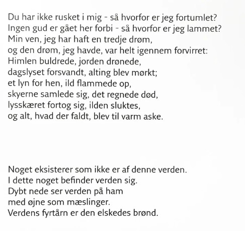 Med hvert træsnit følger tekstark med et uddrag fra det babyloniske helteepos om sagnkongen Gilgamesh og tilhørende digt/tekstlinier af Have under inspiration af Gilgamesh.