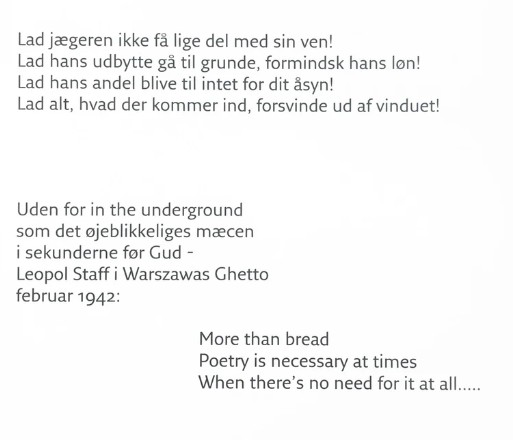 Med hvert træsnit følger tekstark med et uddrag fra det babyloniske helteepos om sagnkongen Gilgamesh og tilhørende digt/tekstlinier af Have under inspiration af Gilgamesh.